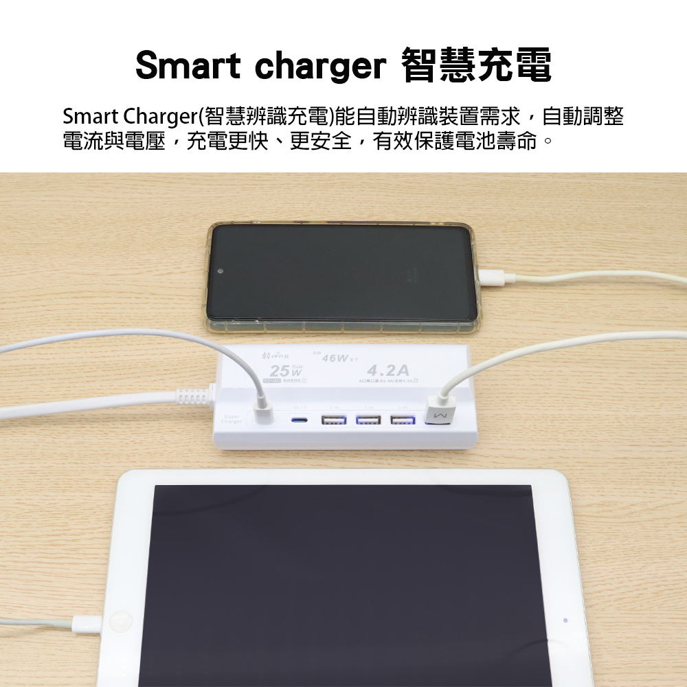 1.具有智慧辨識功能,若滿足充電裝置之快充協定,則可支援快速充電功能。
