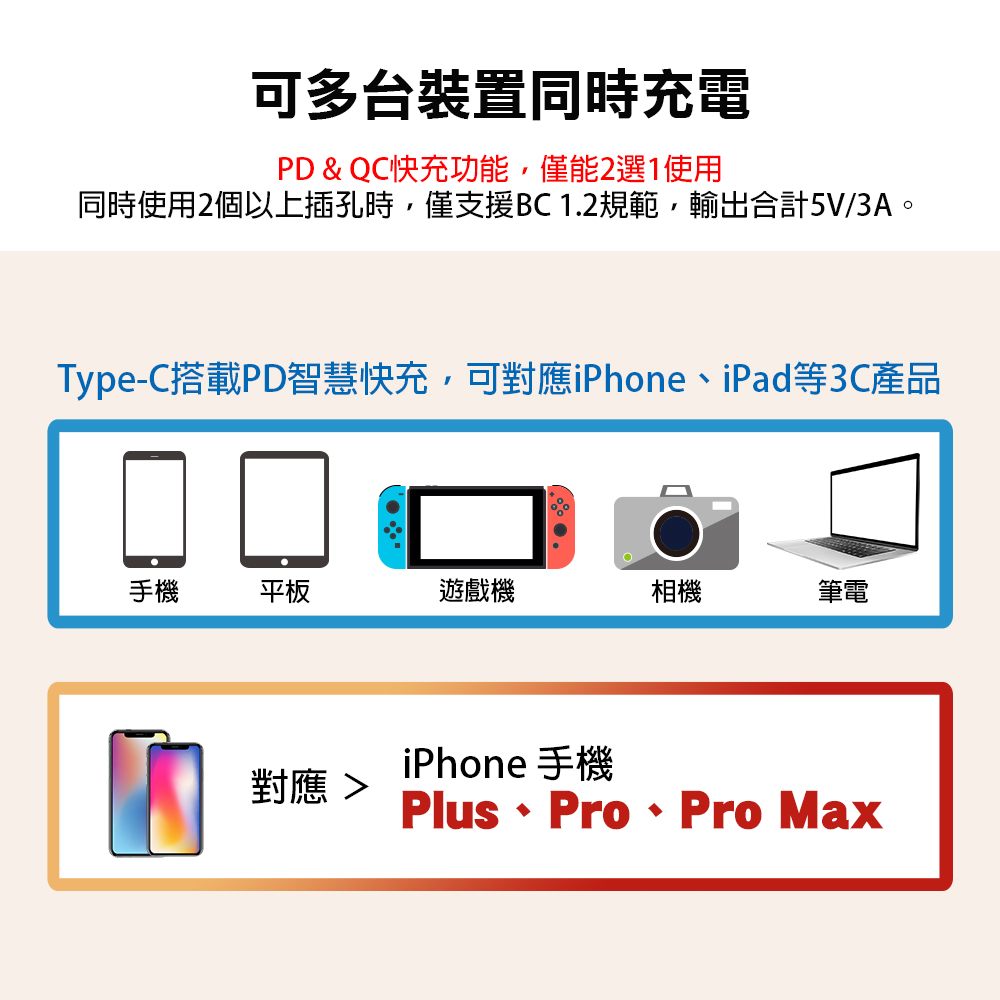 3.PD&QC同時使用時,僅支援BC1.2規範,輸出合計5V/3A。