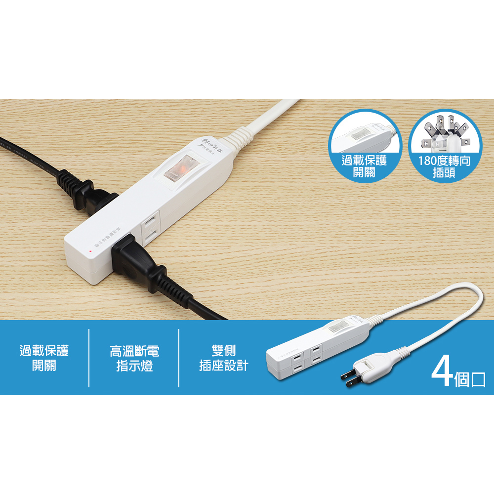 (PTP-154-03)2P高溫斷電1開4插中繼線(插座附過載)