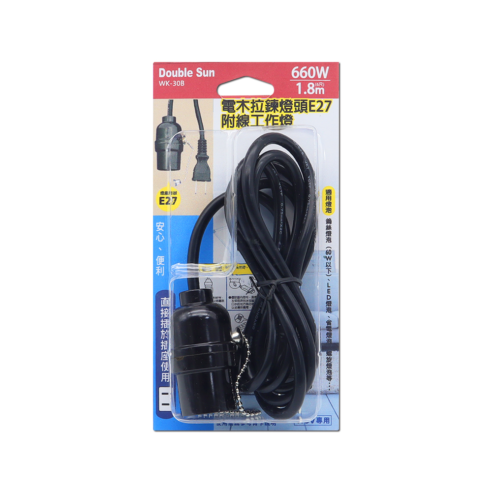 (WK-30B)簡易拉鍊燈頭E27附電源線7A6尺