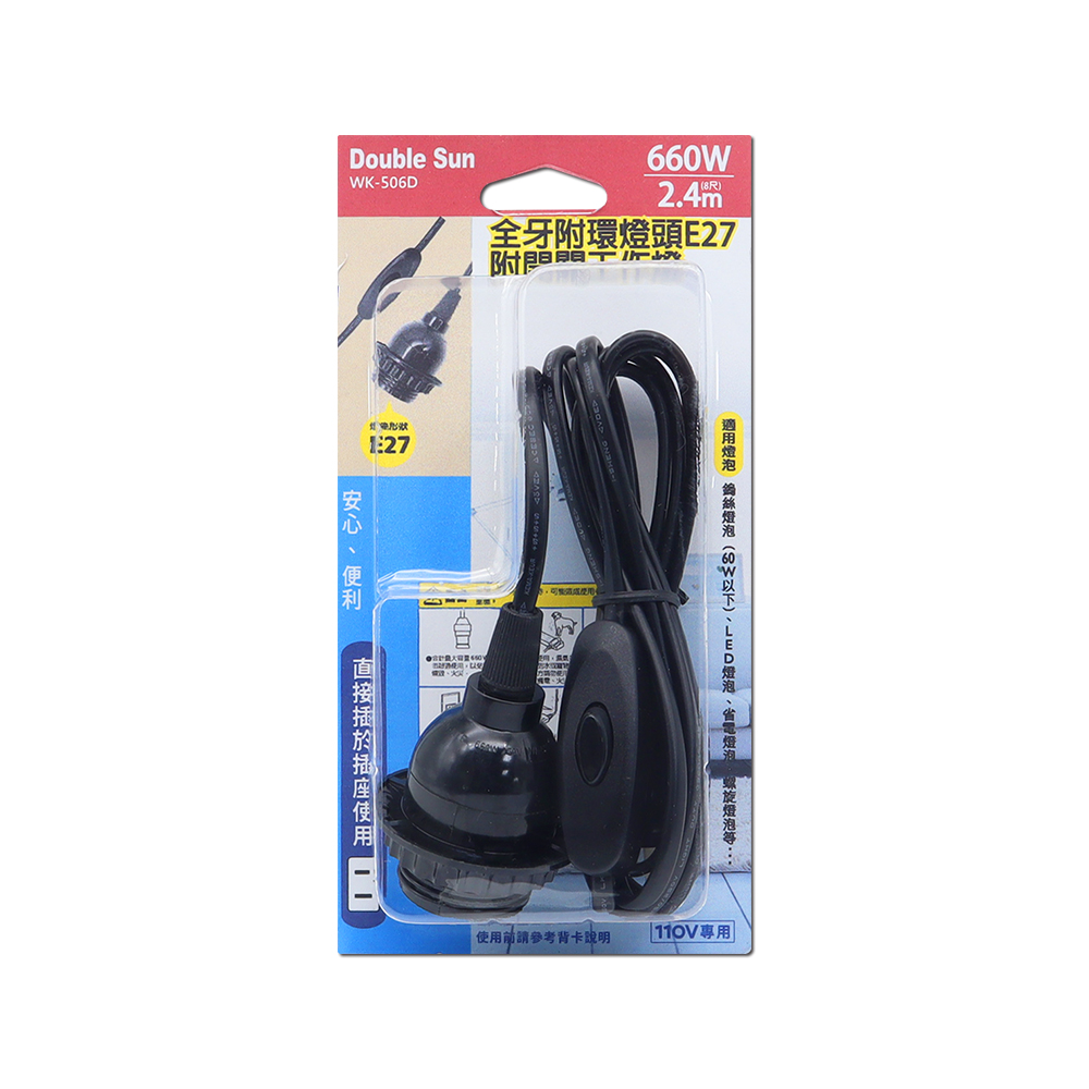 (WK-506D)全牙燈頭E27附電源線7A8尺附開關