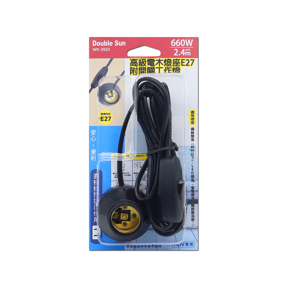 (WK-536C)高級燈頭E27附電源線7A8尺附開關