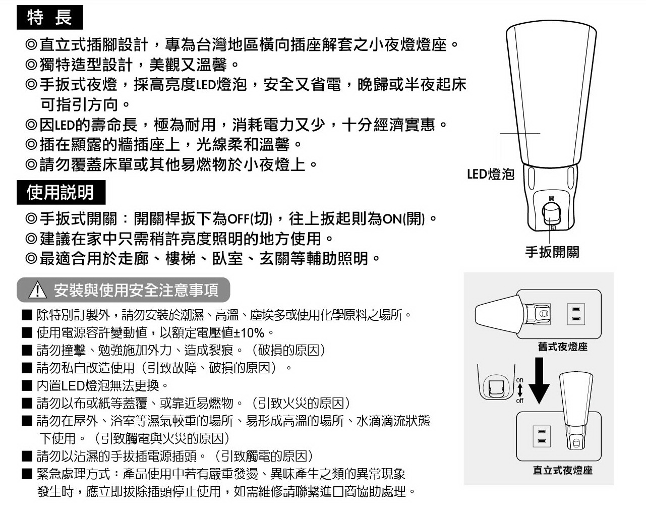 (LED-190S)圓形直立式手動小夜燈