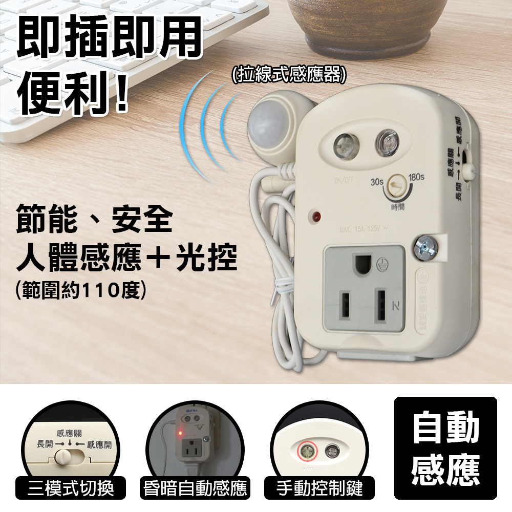 (PR-05M)拉線式人體感應分接器15A(3段式)