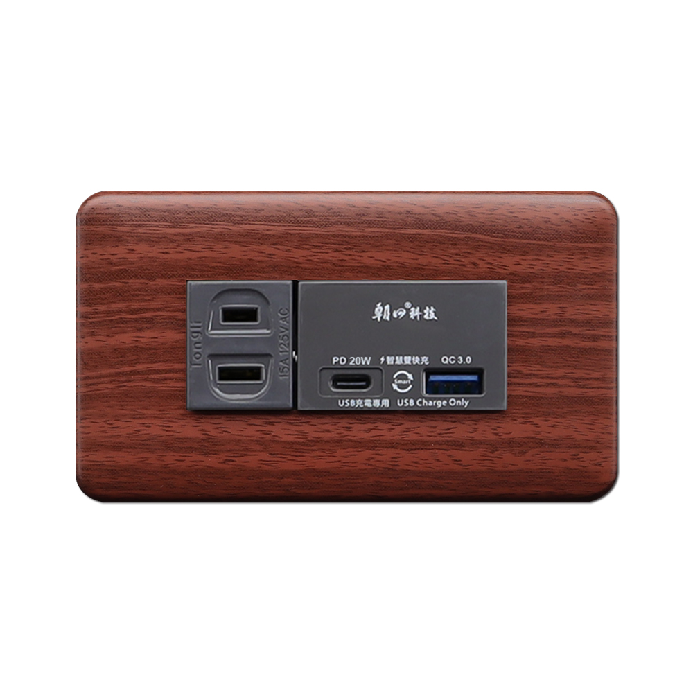 (DT-UR082)柚木紋組合式PD20W+QC3.0+單接地插座組(裸裝)