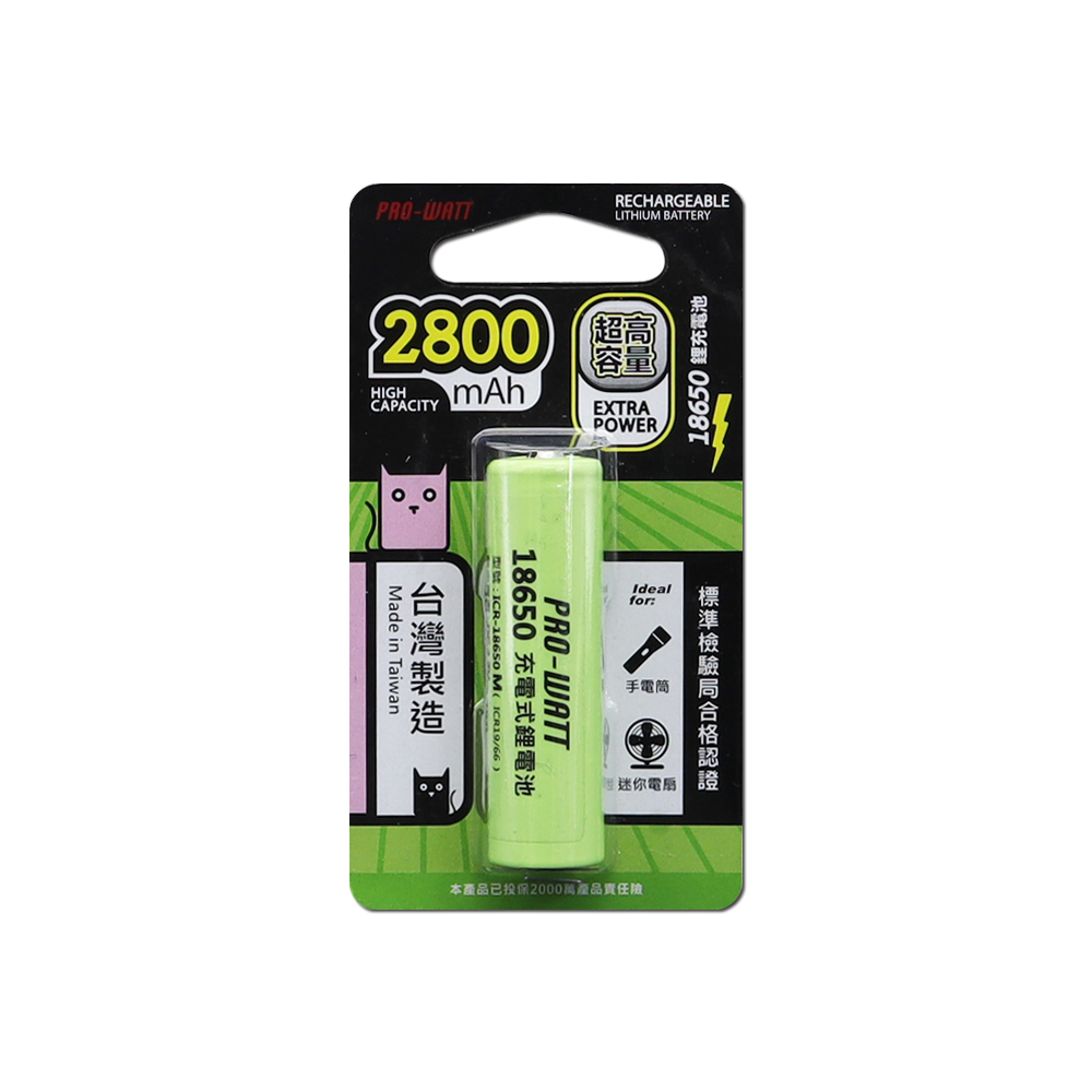 (ICR-18650M-1)18650充電式鋰電池2800mAh (凸頭)